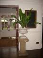 Stone column with metal urn, planted with fern |