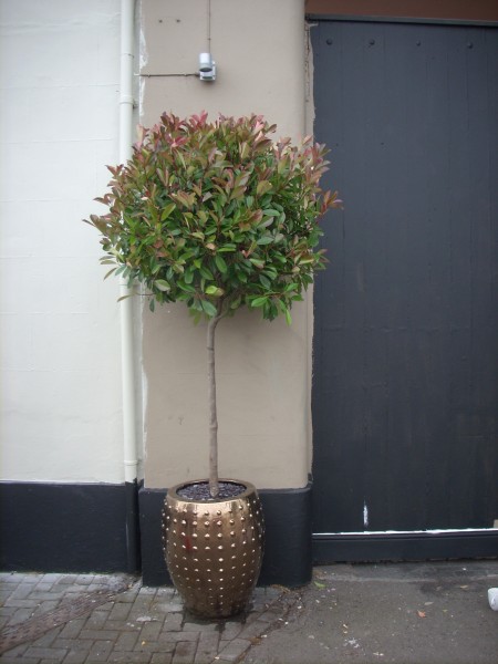 Photinia ball in gold ceramic pot