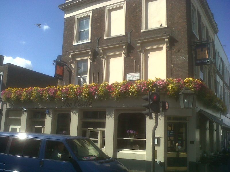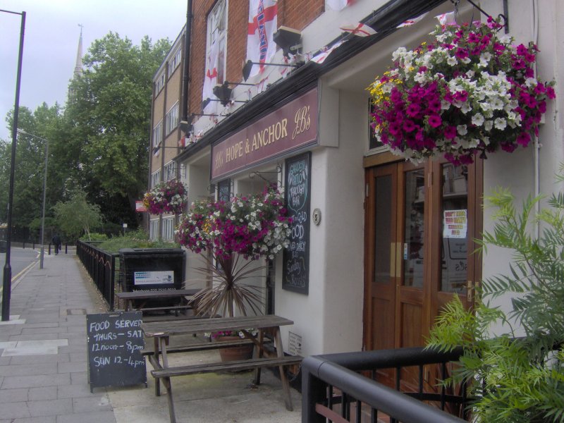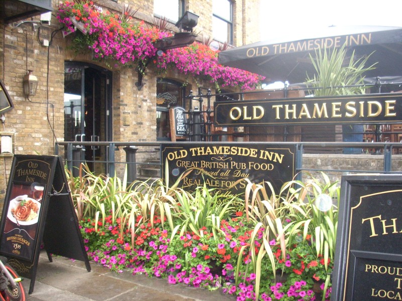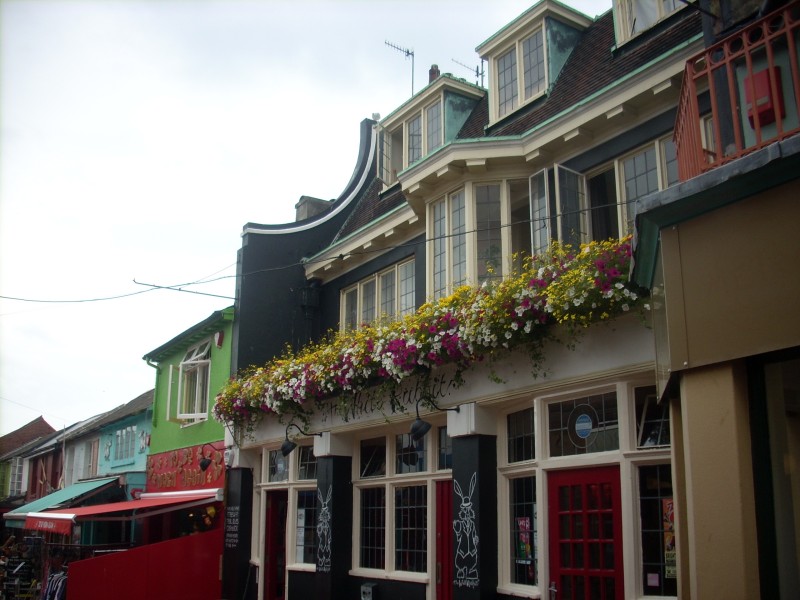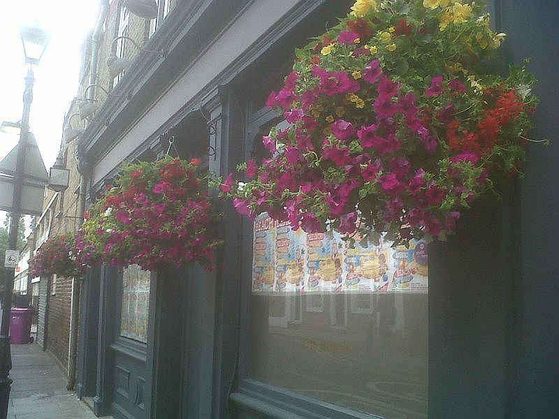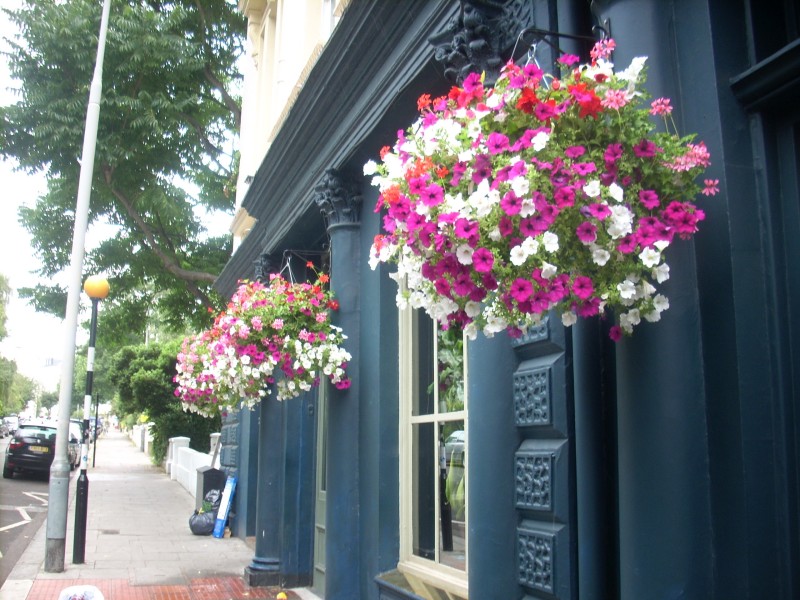 Summer hanging baskets and window boxes in Camden