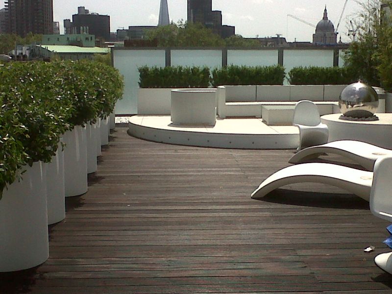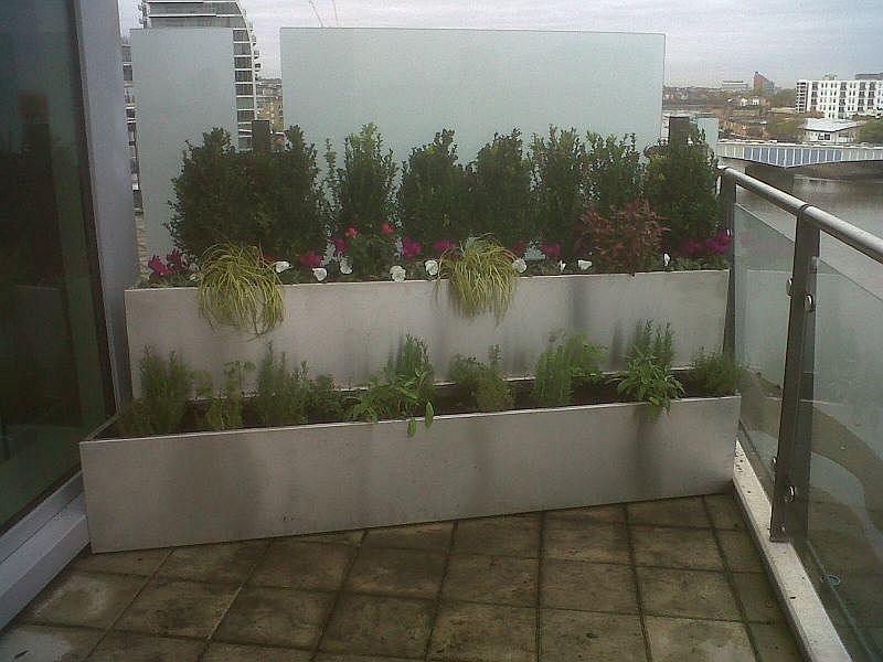 White metal planters for penthouse area