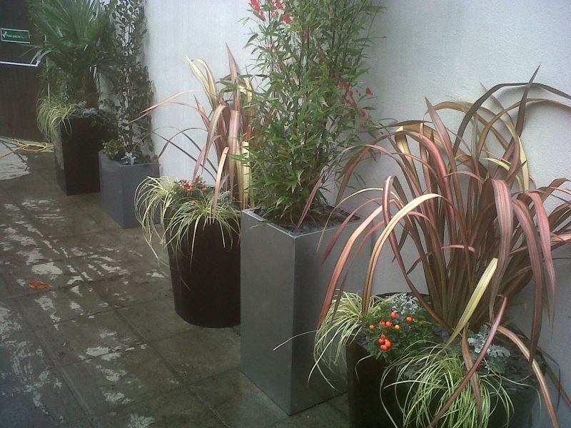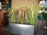 Galvanised planter with Phormiums |