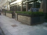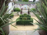 Buxus hedge in timber boxes |