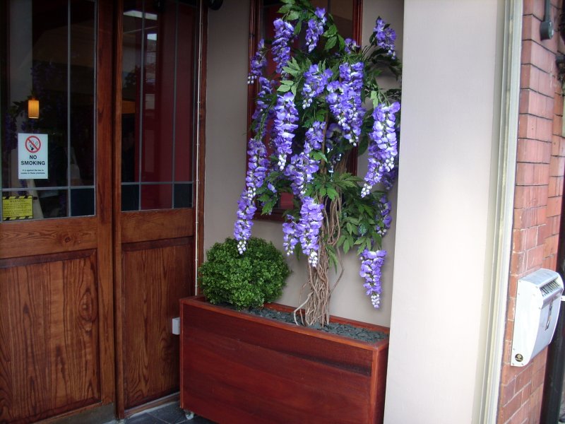 Artificial display - window boxes & grass balls |